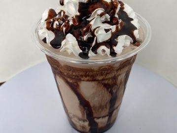 Classic Malted Milkshake made with real ice cream, malt powder, whole milk and chocolate syrup.
